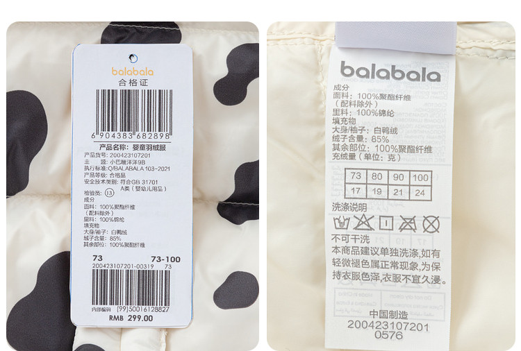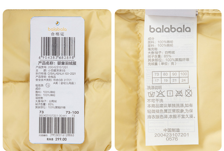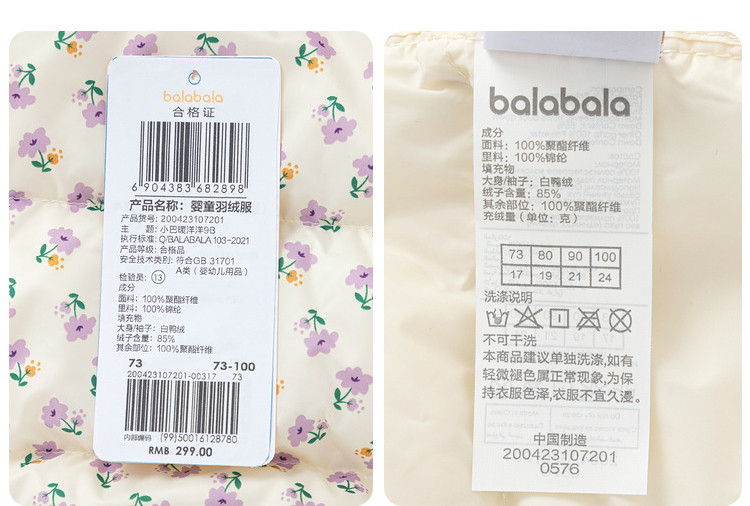 商品名称:巴拉巴拉婴儿羽绒服男童女童冬季短款外套宝宝造型连帽可爱萌保暖 374661