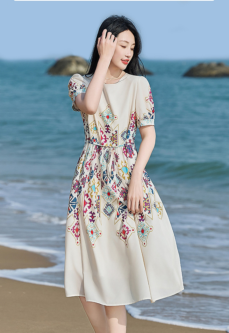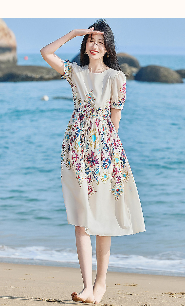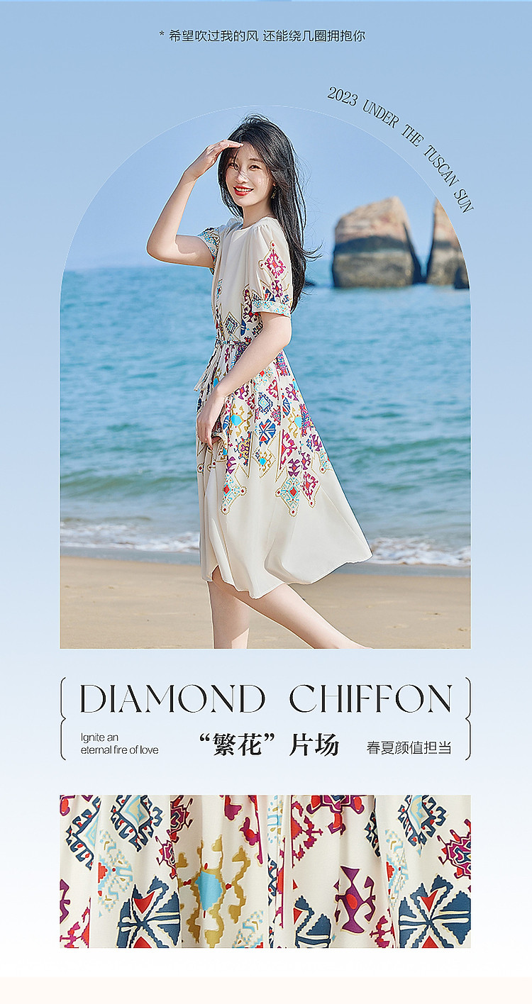 【浪漫法式系列】轻薄飘逸仙感氛围不定位印花中袖连衣裙夏 732161