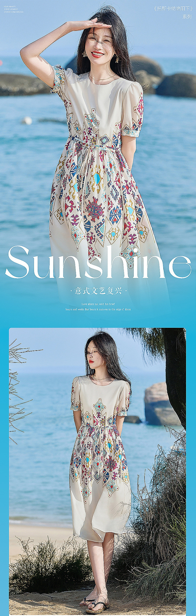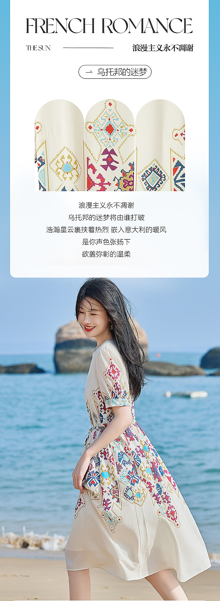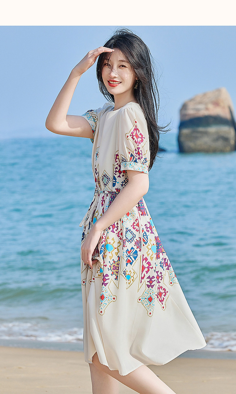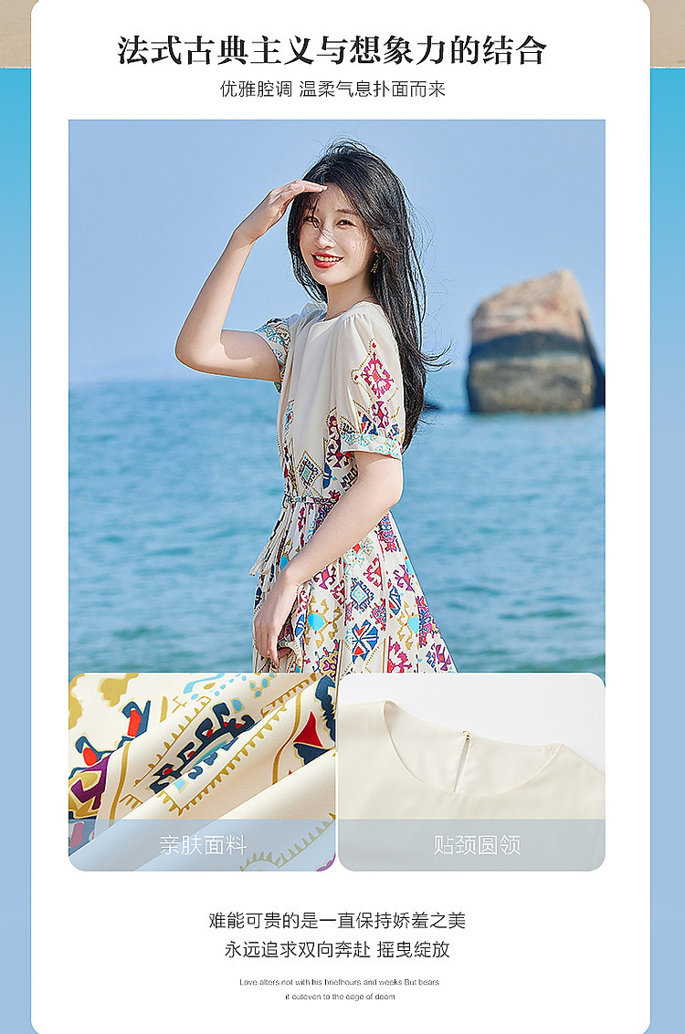 商品名称:【浪漫法式系列】轻薄飘逸仙感氛围不定位印花中袖连衣裙夏 732161