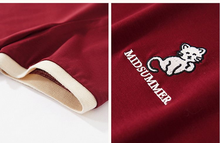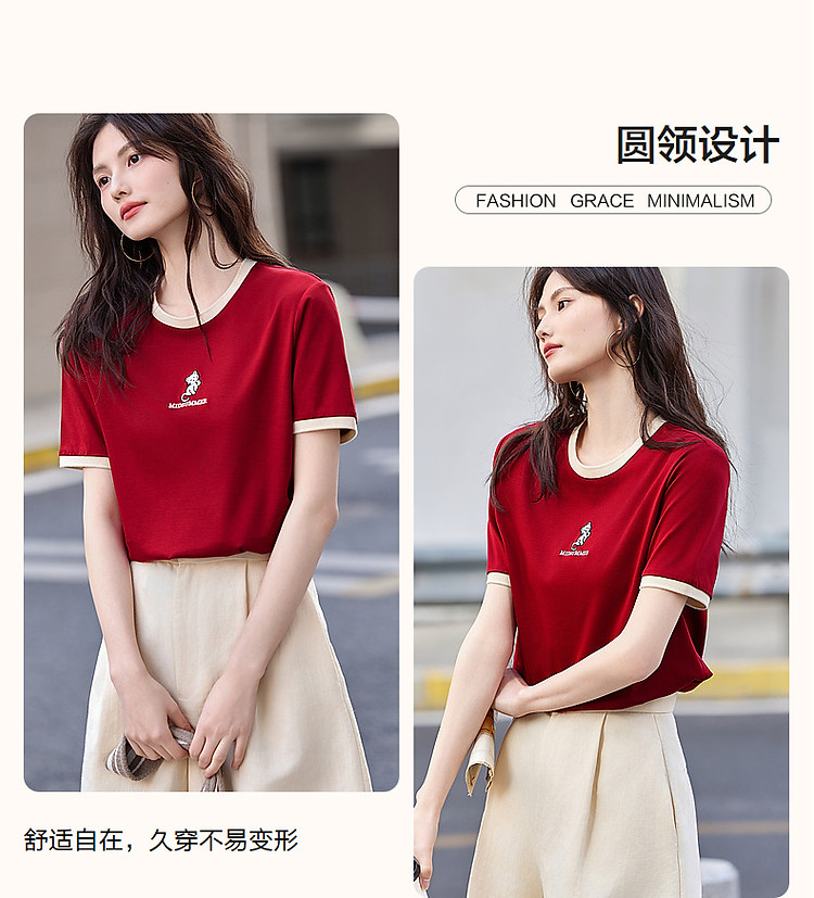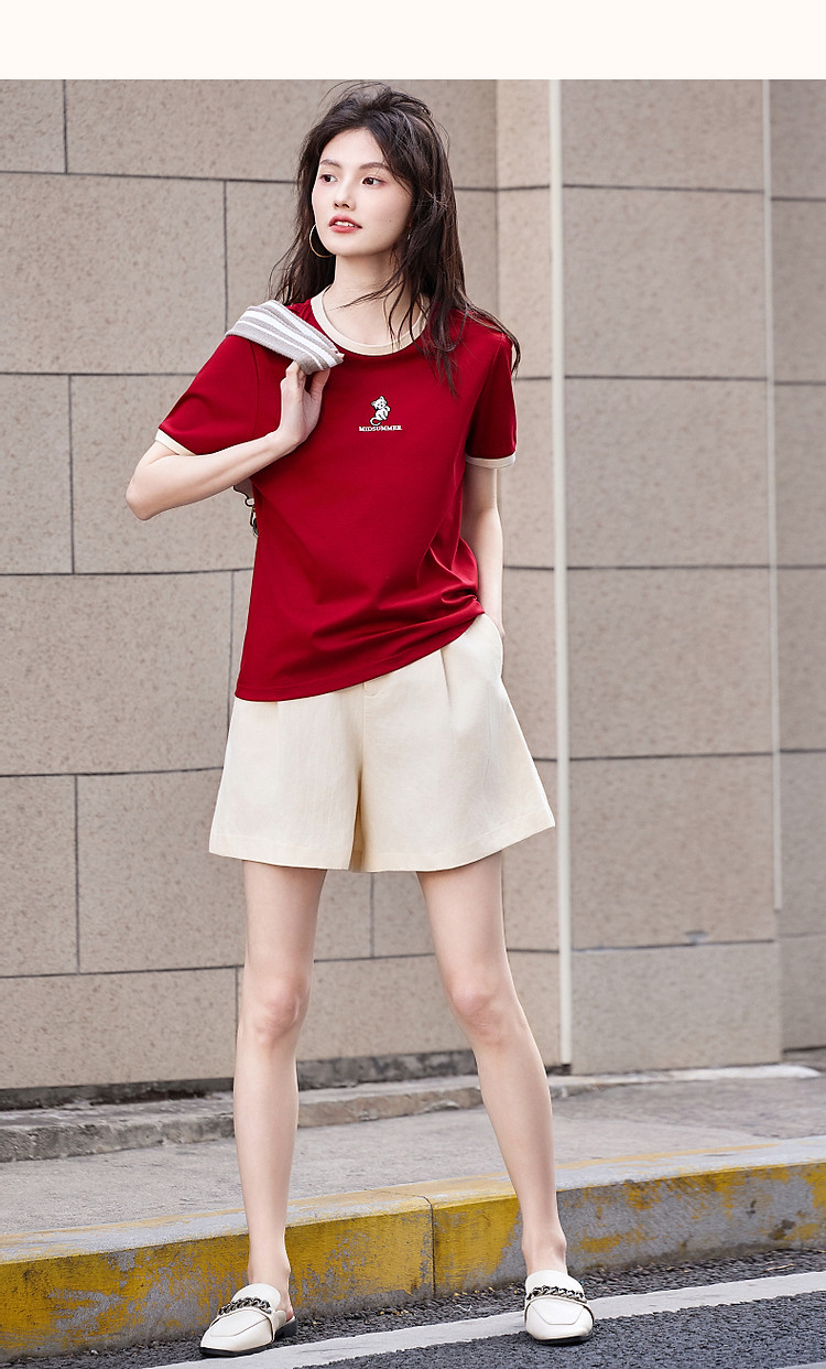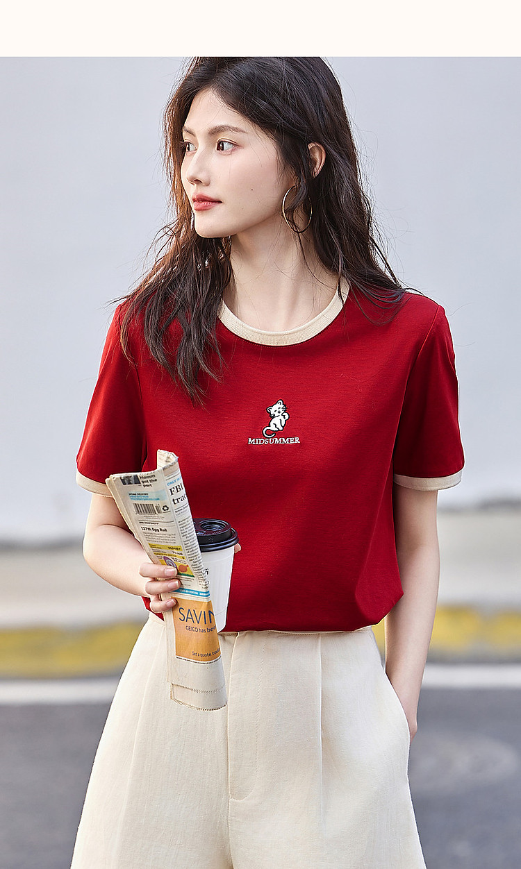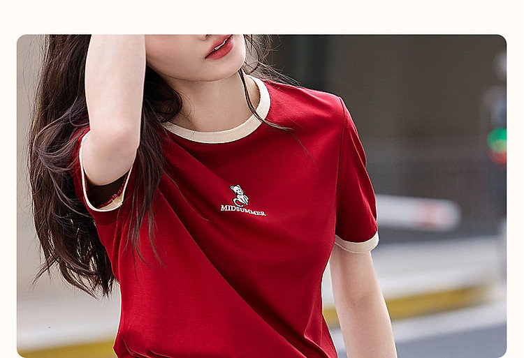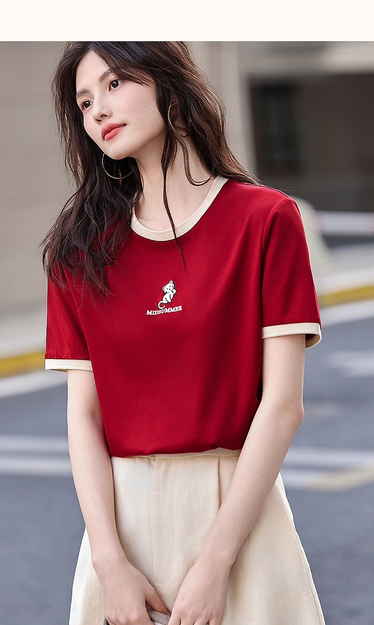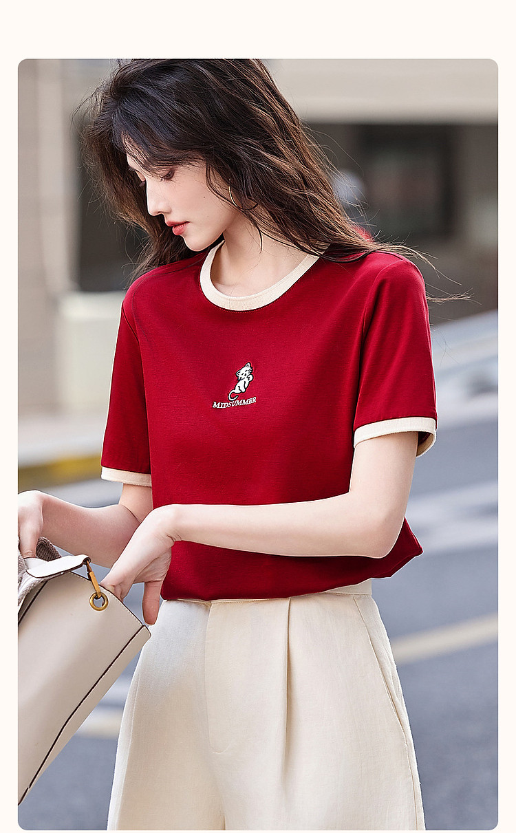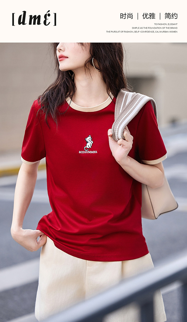 商品名称:【猫咪控可入】夏阳光棉可爱字母绣花短袖撞色罗纹女式t恤 184577