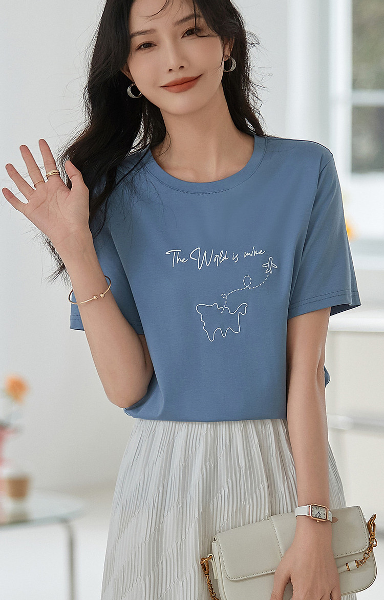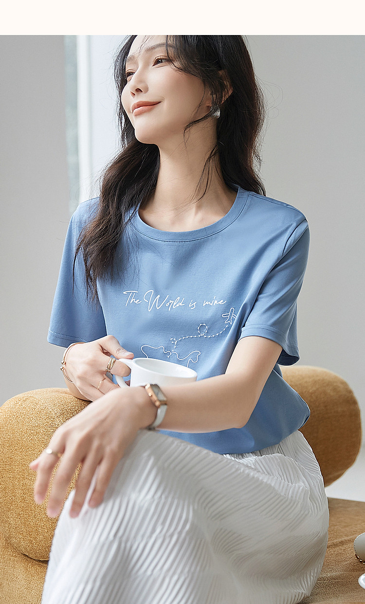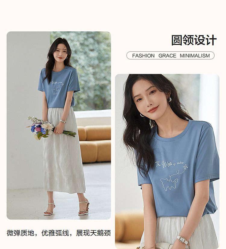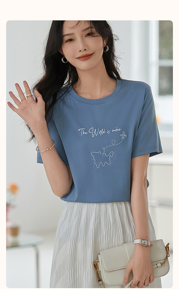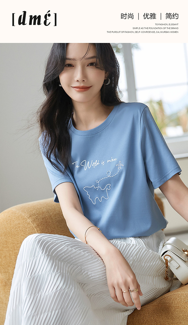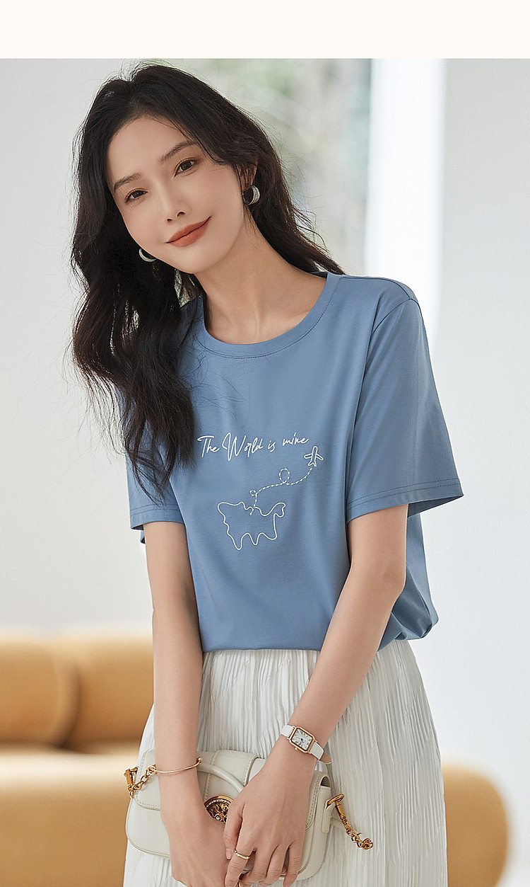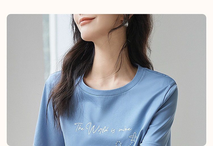 商品名称:【含桑蚕丝180G丝光棉】夏季轻氧圆领字母印花小个子女式t恤 547457