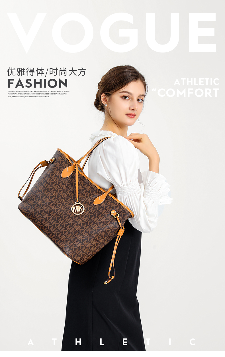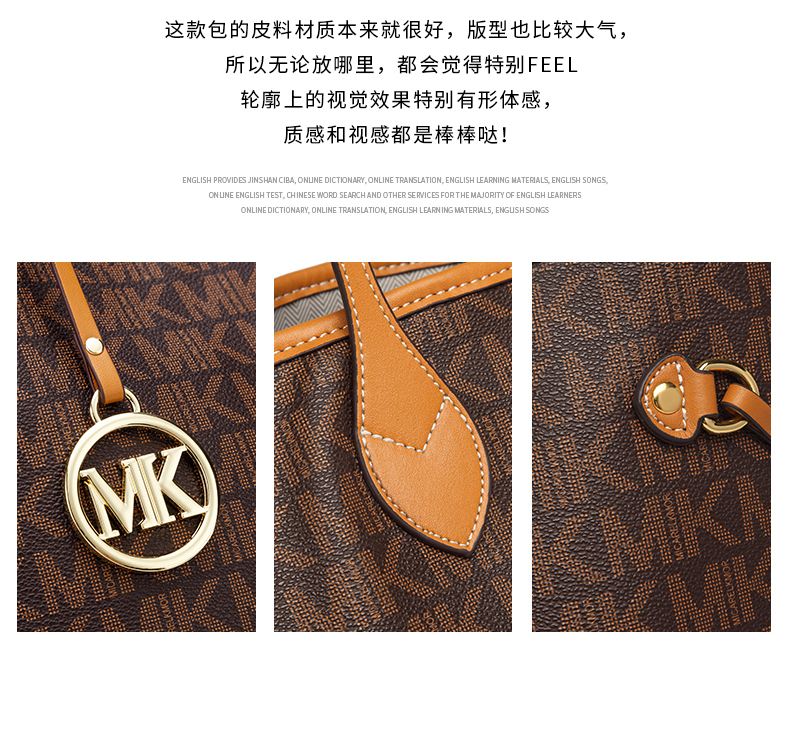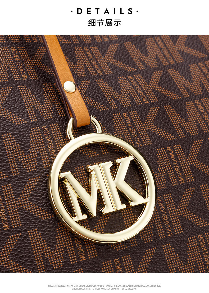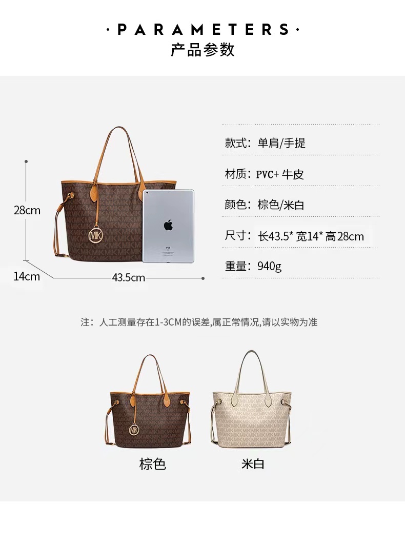 商品名称:MICAREL KMOR(英国MK)大容量单肩PVC+牛皮手提包子母包