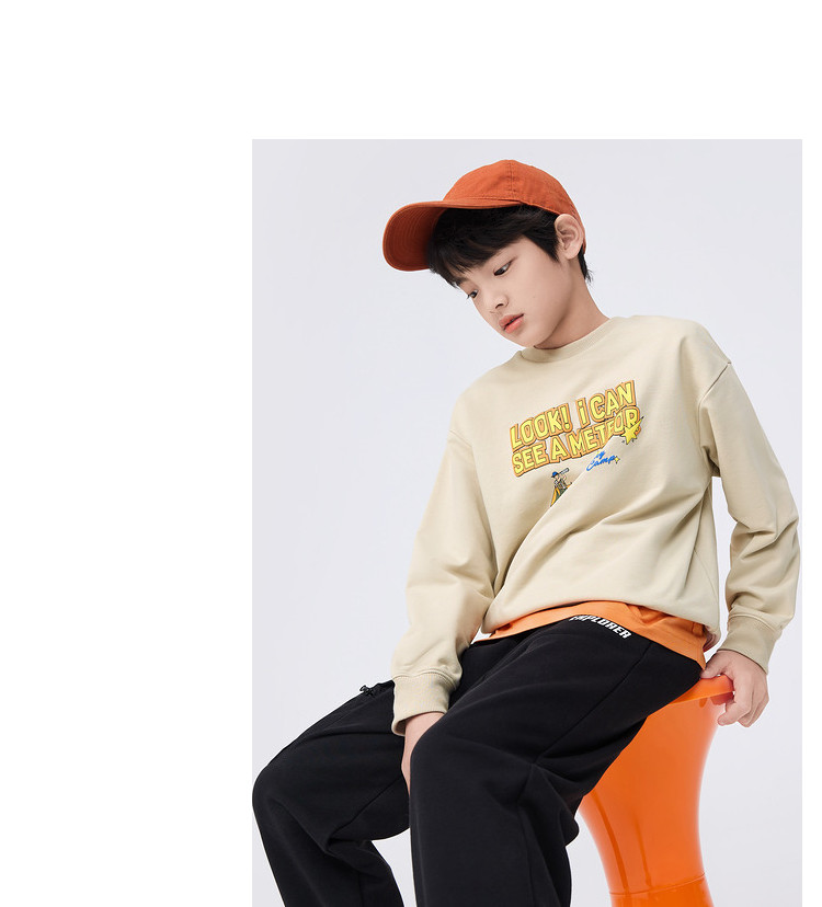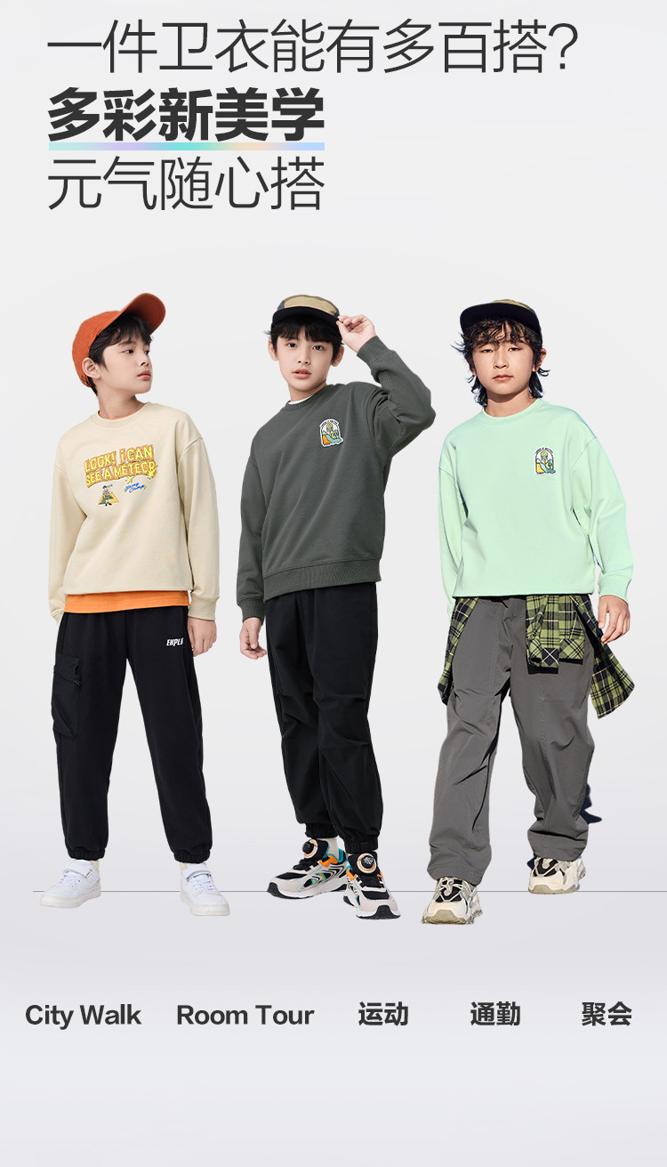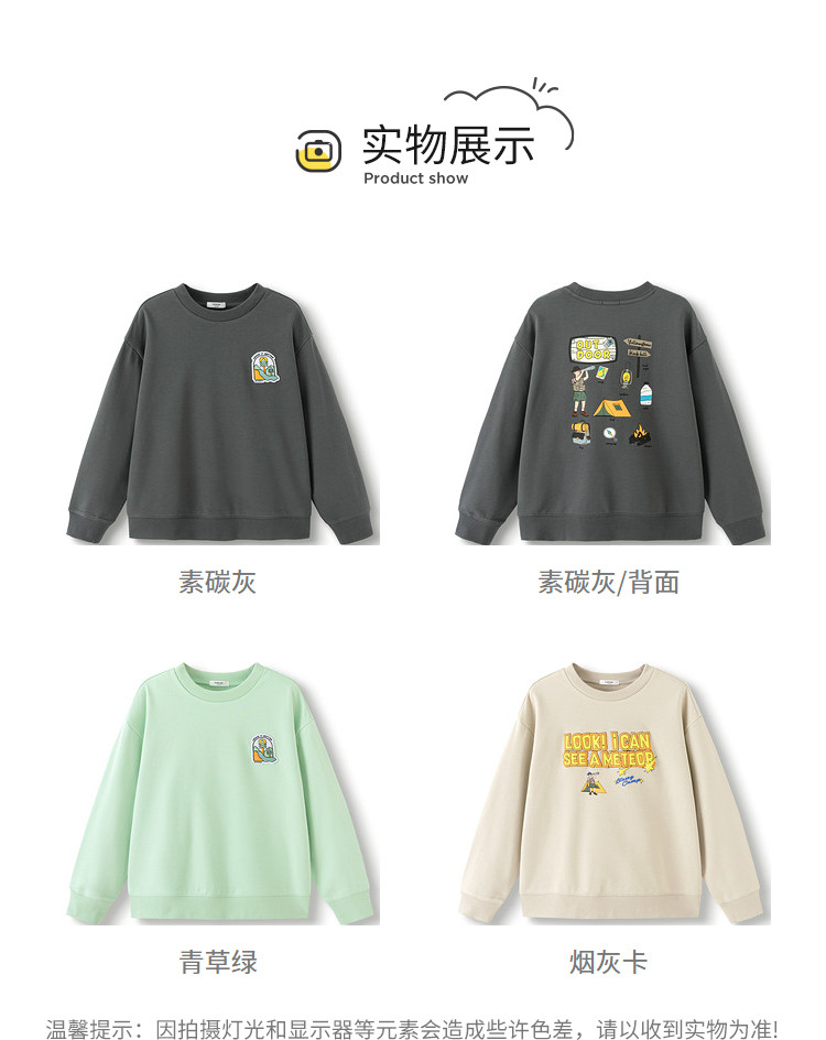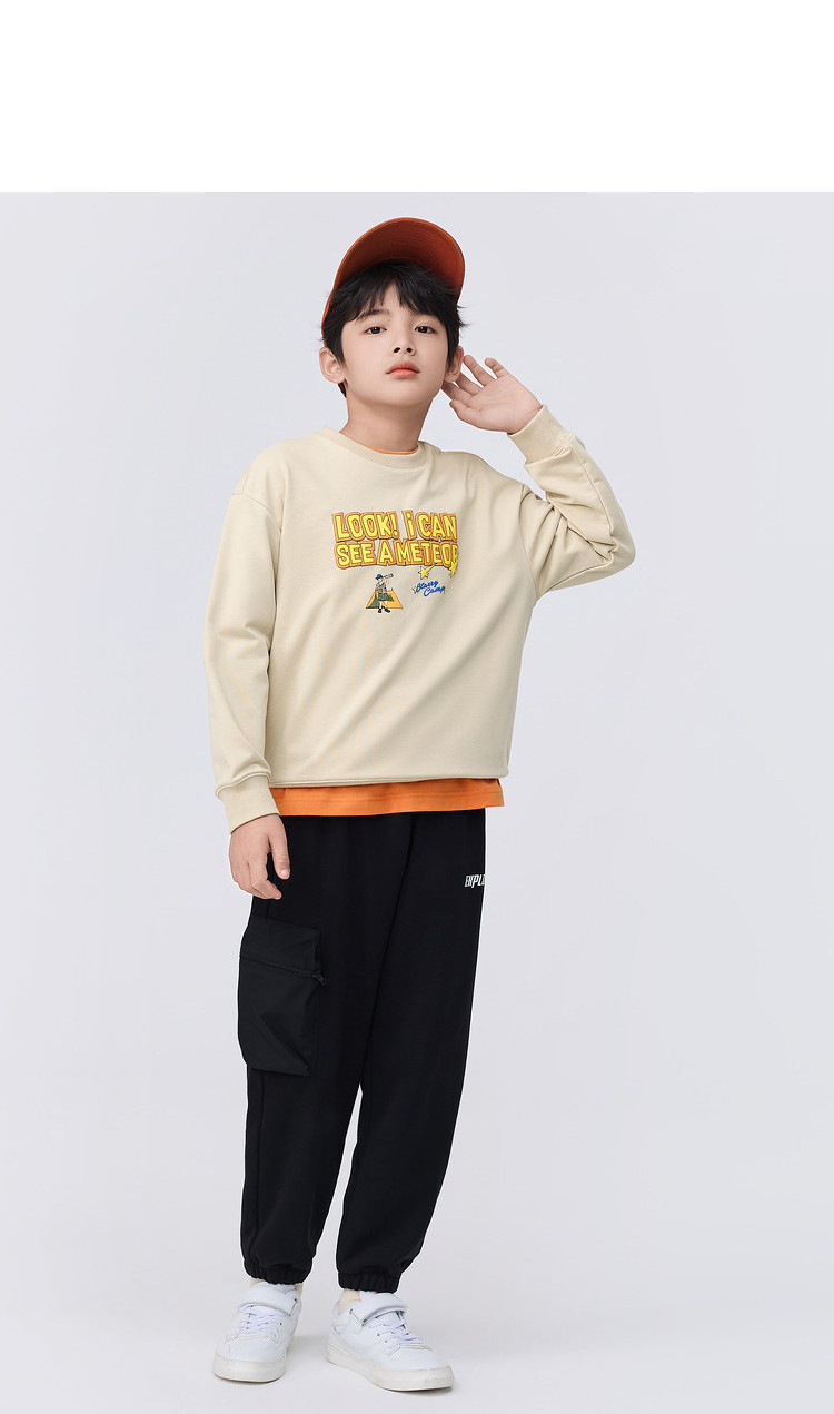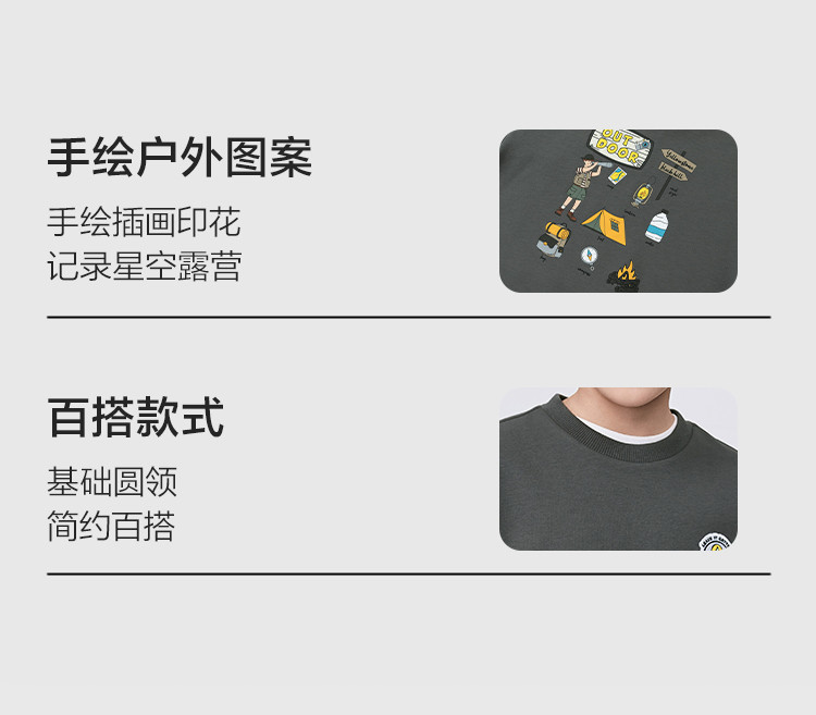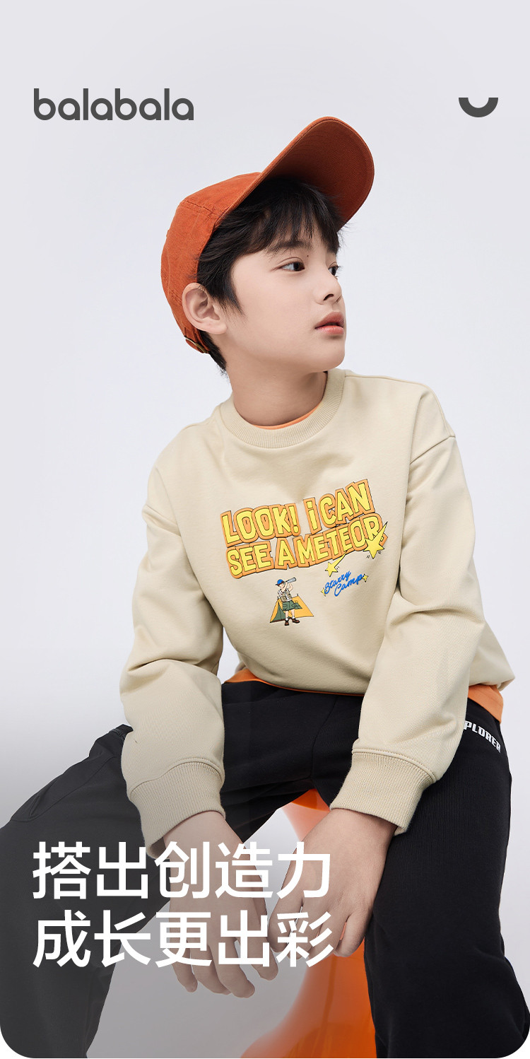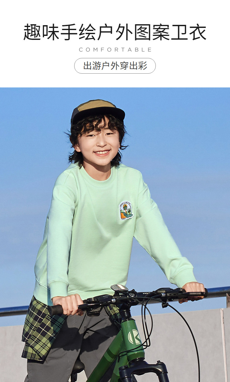 商品名称:户外风基础款卫衣男童儿童春秋装上衣圆领套头中大童印花 665029
