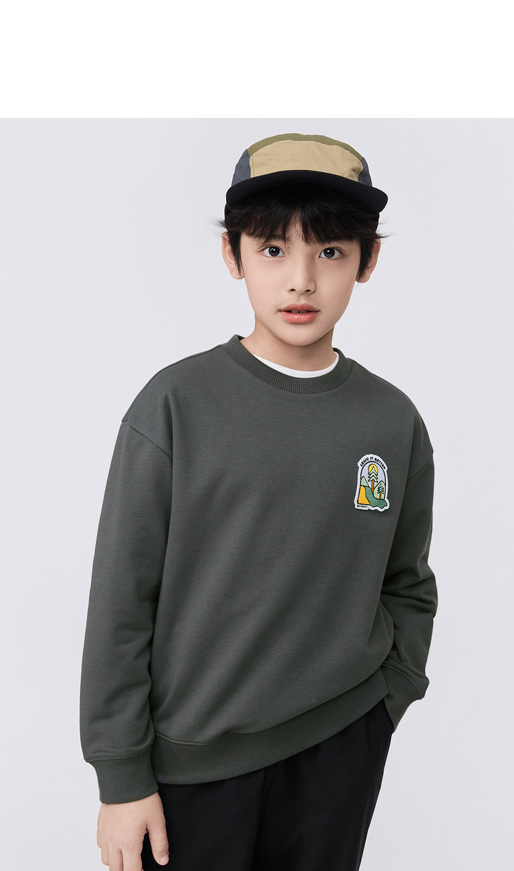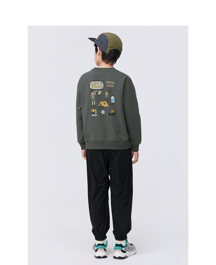 户外风基础款卫衣男童儿童春秋装上衣圆领套头中大童印花 665029
