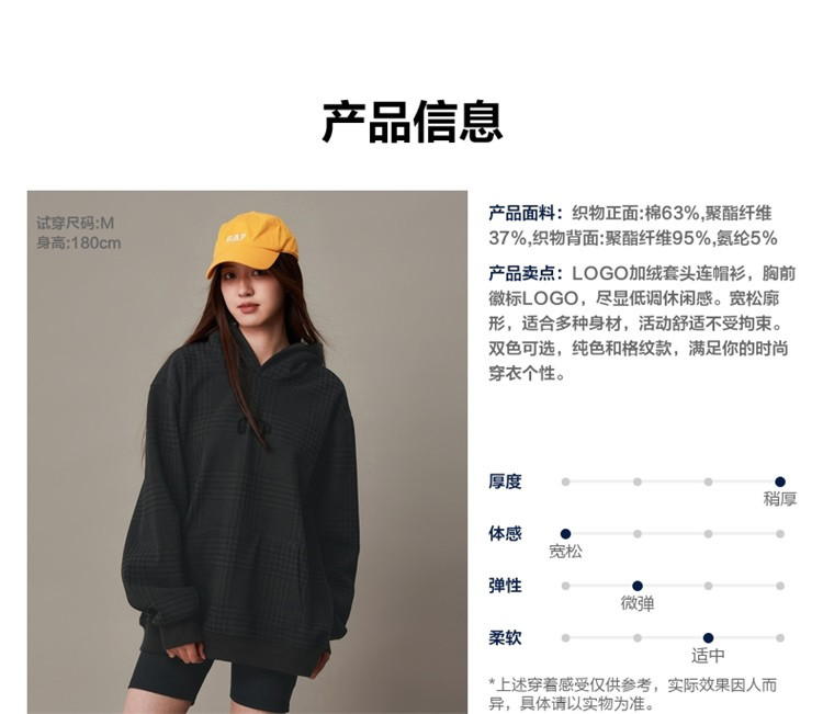 商品名称:Gap男女装春夏LOGO宽松运动卫衣841200连帽衫 450330