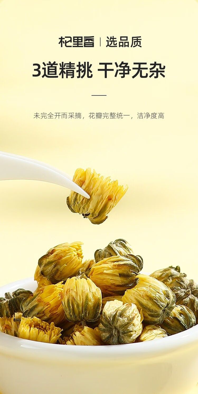 商品名称:3罐杞里香胎菊桐乡胎菊王头茬采摘花茶花草茶叶罐装贡菊