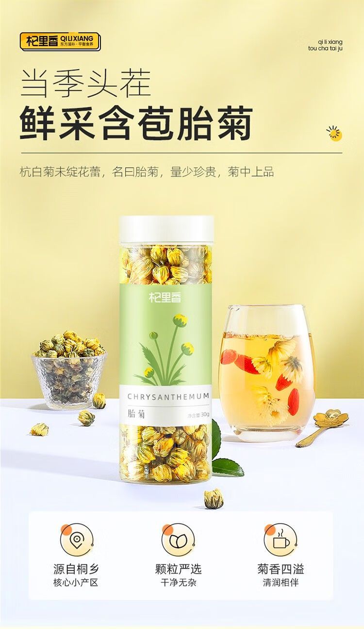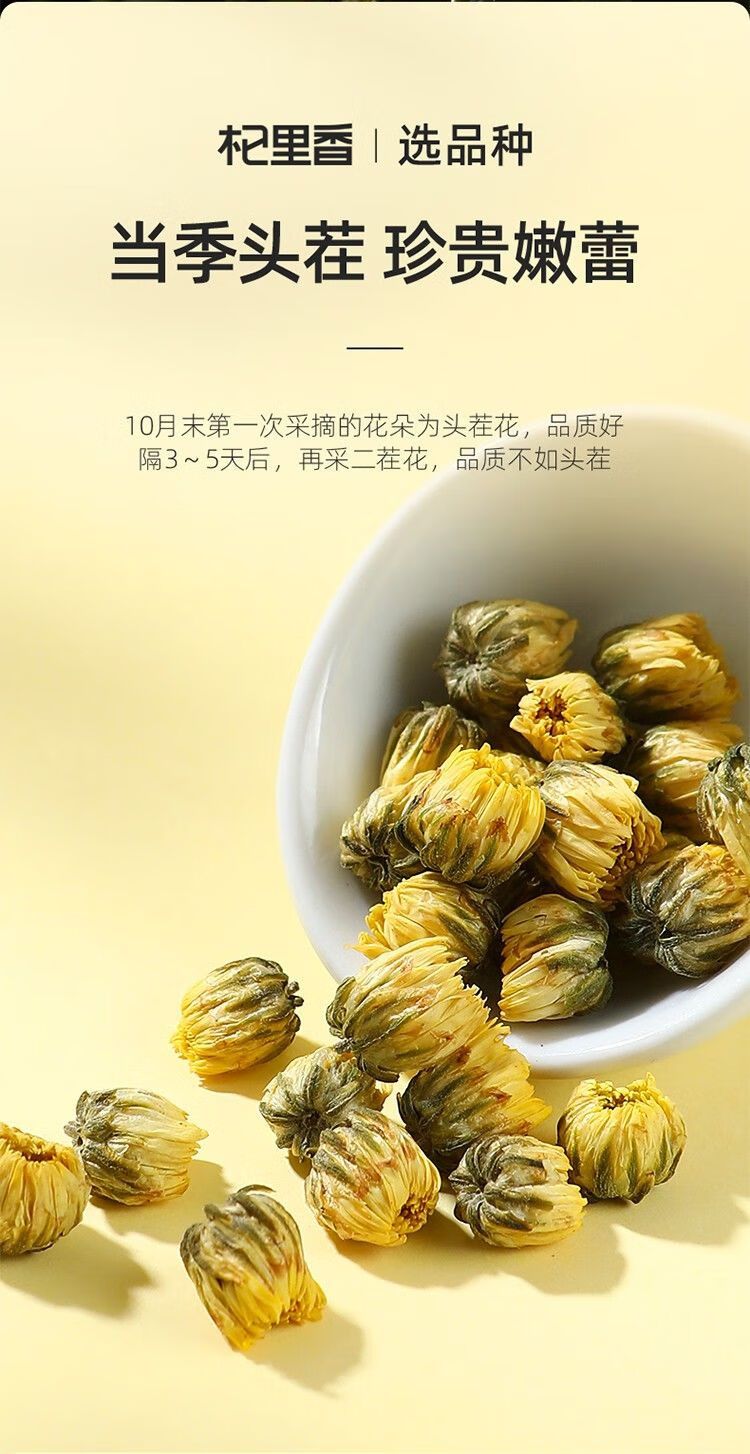 3罐杞里香胎菊桐乡胎菊王头茬采摘花茶花草茶叶罐装贡菊