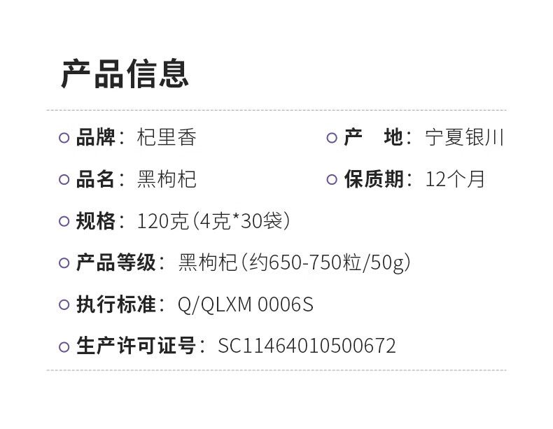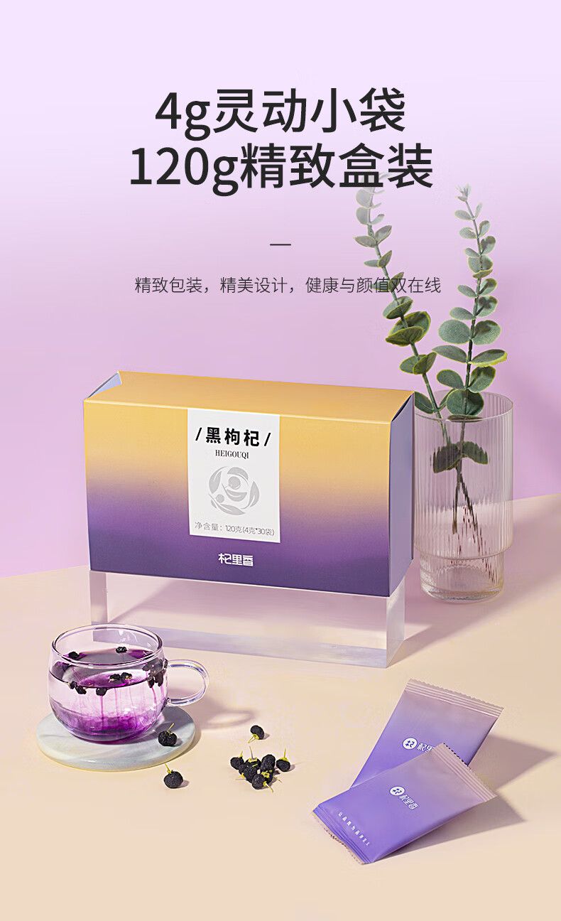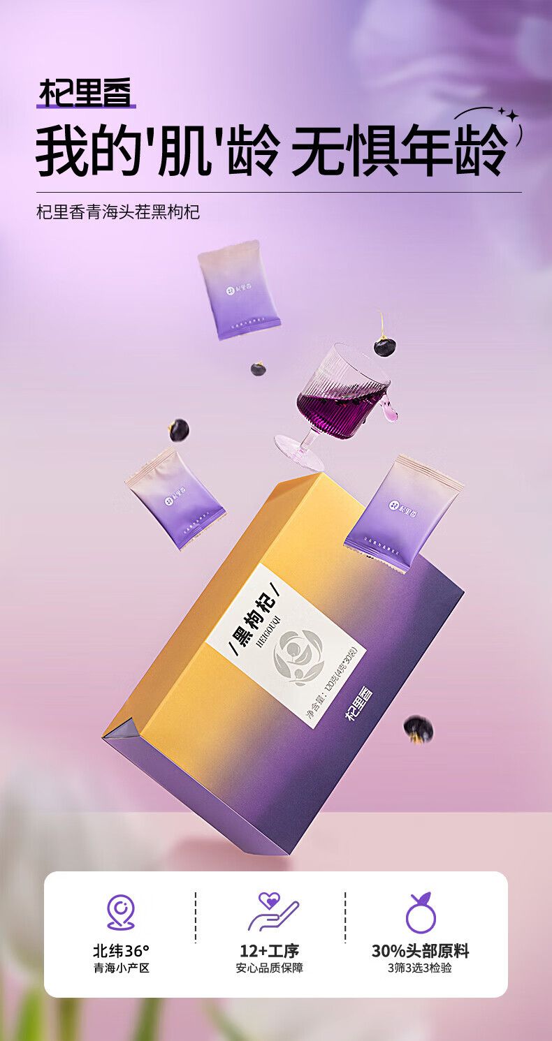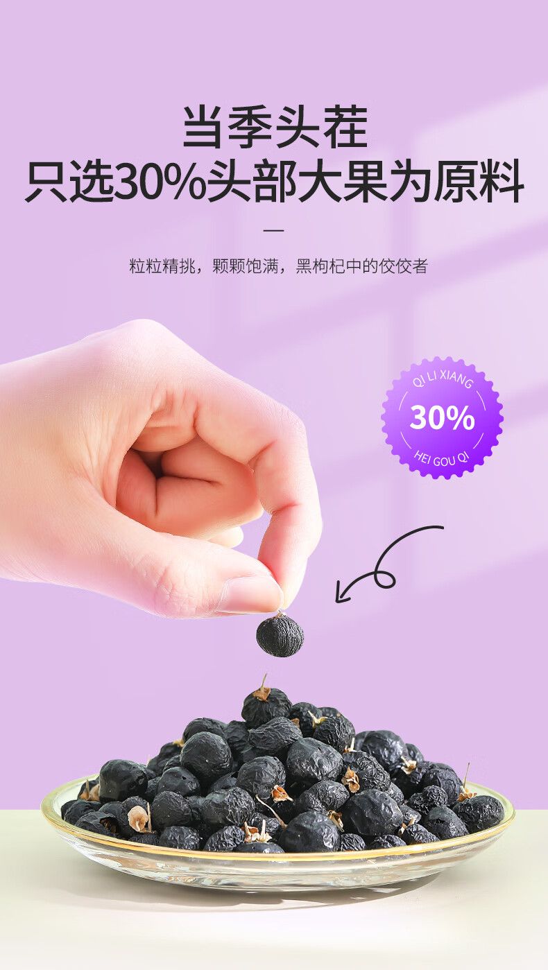 商品名称:李佳琦热卖2盒杞里香青海黑枸杞中大果120g/盒正品格尔木枸杞子正宗泡水泡茶泡酒干吃
