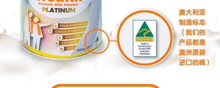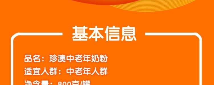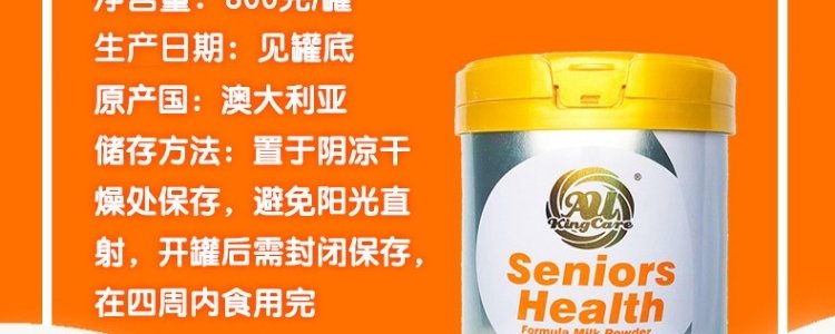 商品名称:澳大利亚 珍澳(KingAucare)中老年配方奶粉 800g