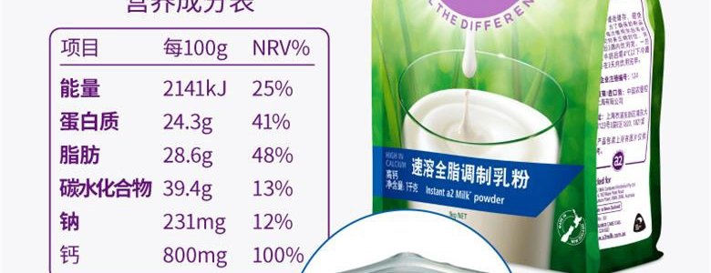 商品名称:新西兰 A2 成人全脂奶粉 1kg