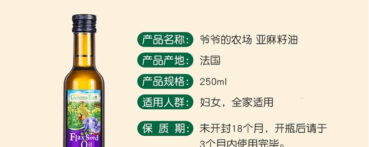 商品名称:法国 爷爷的农场(Grandpa's Farm)亚麻籽油 250ml