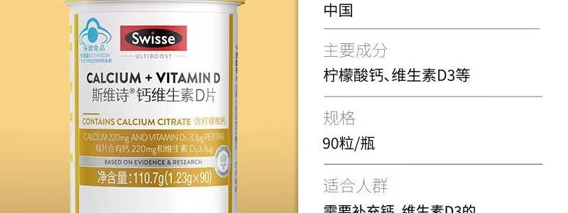 商品名称:澳洲 瑞思(Swisse)钙加维生素D片 90粒 迷你钙