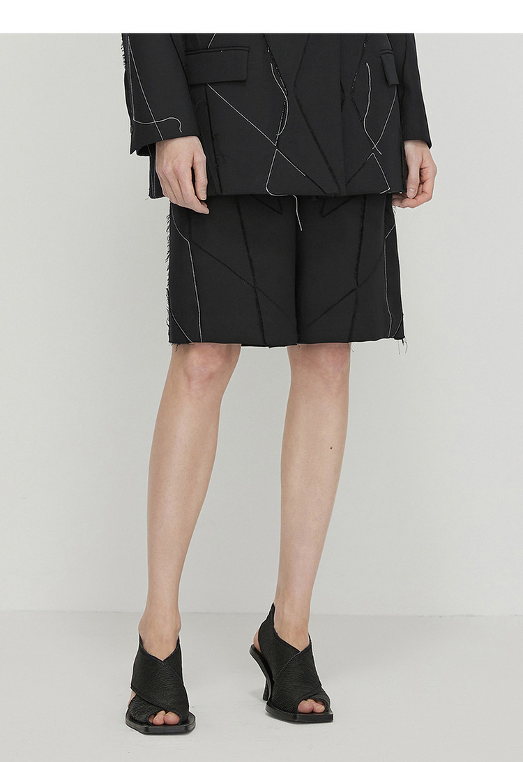 春短裤女休闲拼接直筒五分裤简约时尚 604619
