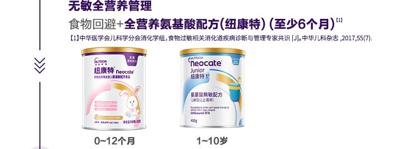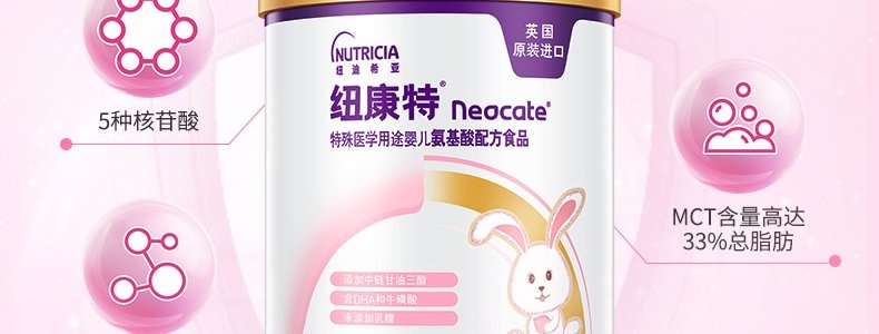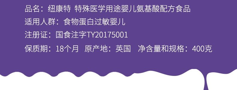 商品名称:纽康特(Neocate)特殊医学用途婴儿氨基酸配方食品 400g 适用0-12个月食物蛋白过敏婴儿*新旧包装随机发货