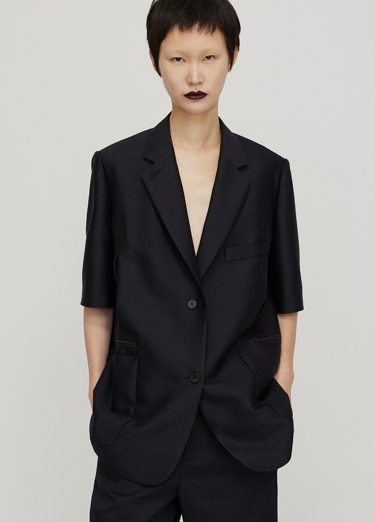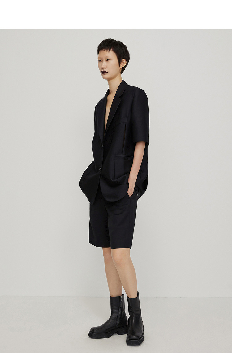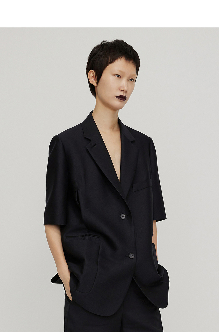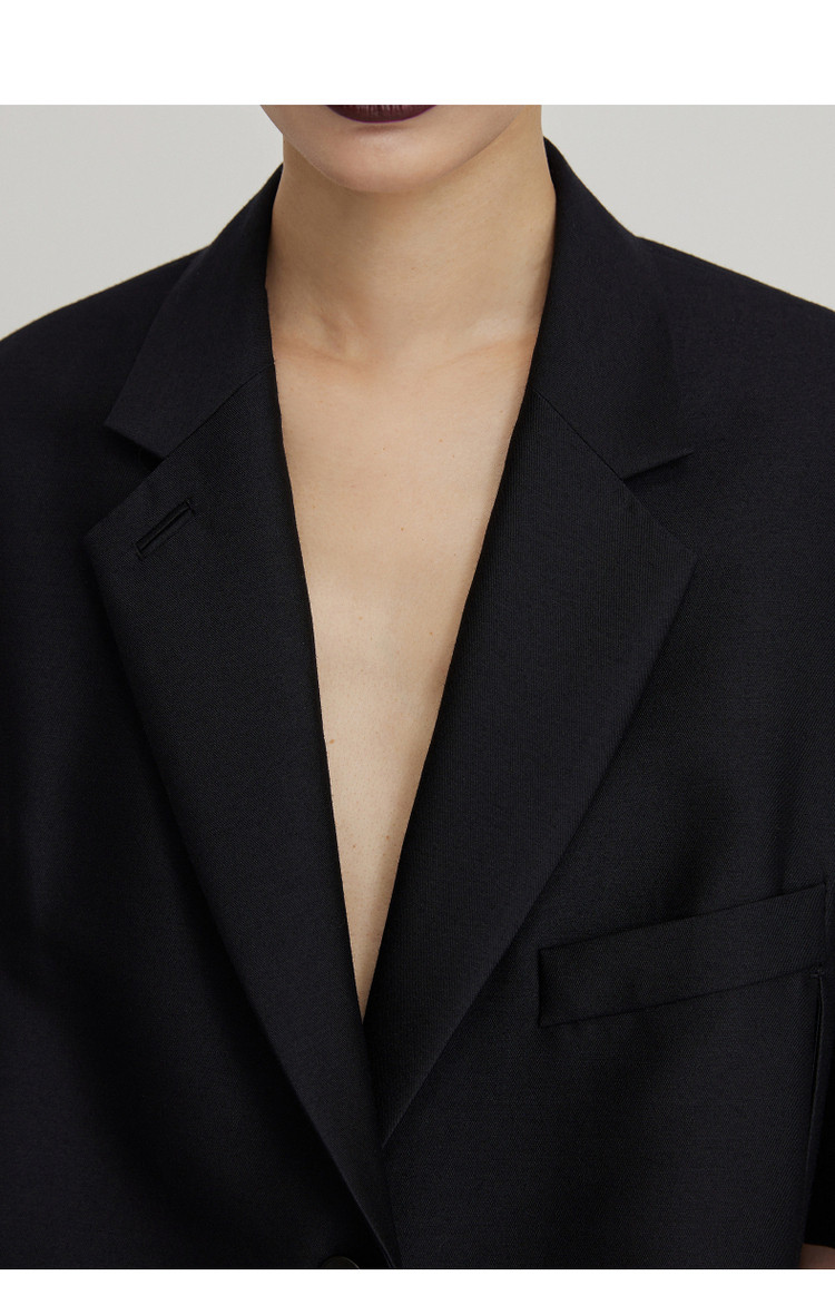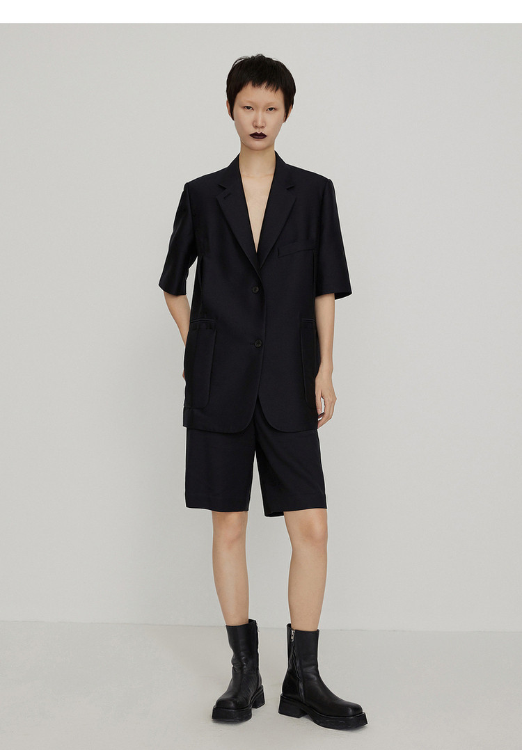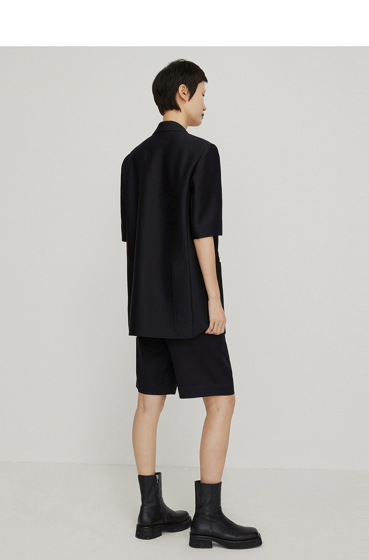 春新品西服纯色宽松中袖休闲外套女 162443
