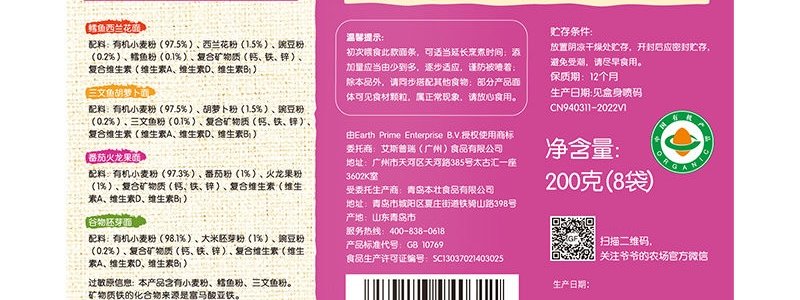 商品名称:法国 爷爷的农场(GRANDPA'S FARM)有机婴幼儿片片面 200g