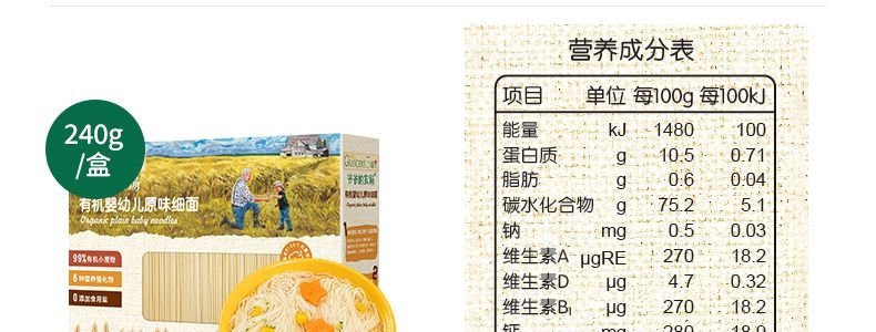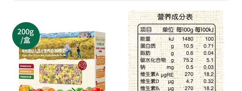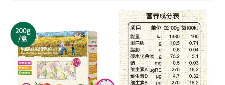 商品名称:法国 爷爷的农场(GRANDPA'S FARM)有机婴幼儿营养面 口味随机混发 5盒
