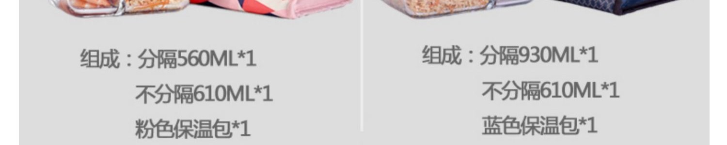 商品名称:乐扣乐扣(locknlock )便当包耐热分隔型玻璃饭盒2件套 560ml+610ml