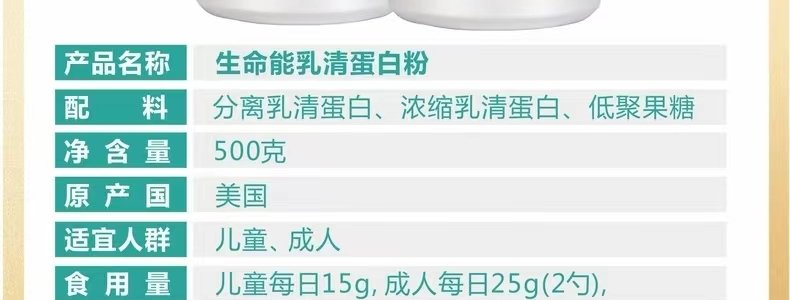 商品名称:美国 生命能(Orgonenergy)乳清蛋白粉礼盒装(500g*2) 1000g