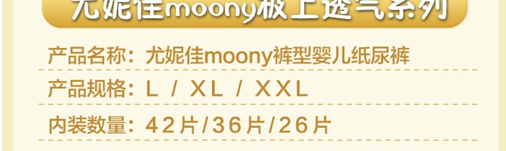 商品名称:日本 尤妮佳(moony)极上通气系列拉拉裤 XXL26(彩标)(15kg以上)