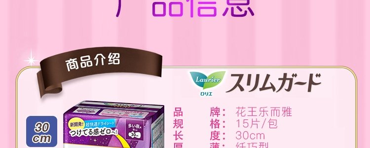 商品名称:日本 花王(Kao)乐而雅S系列卫生巾 15片30cm 夜用