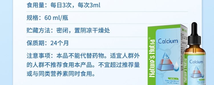 商品名称:美国 莱思纽卡(Nature's Nutra)液体钙 60ml