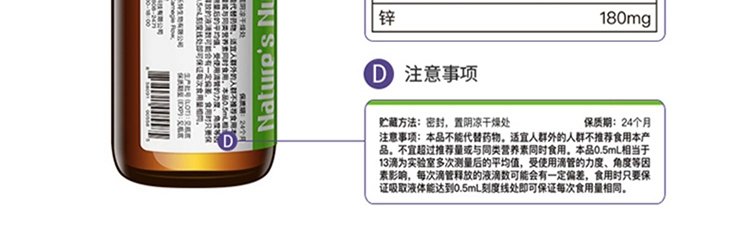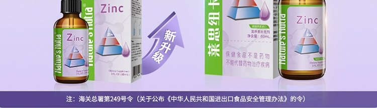 商品名称:美国 莱思纽卡(Nature's Nutra)锌滴剂 60ml