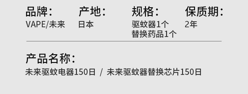 商品名称:日本 未来(VAPE)驱蚊器150日