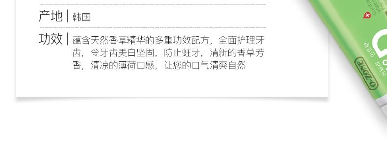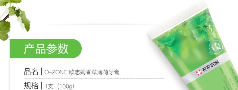 商品名称:韩国 欧志姆(O-ZONE)香草薄荷牙膏 100g