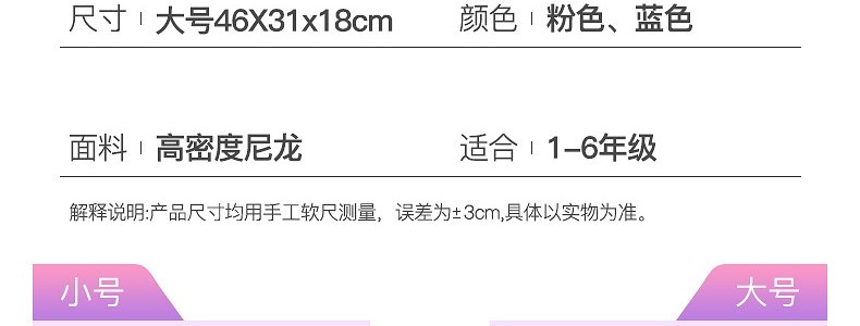 商品名称:醇龙 渐变色小学生书包(1-3年级)粉色 小号
