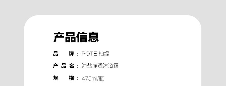 商品名称:柏缇(Pote)海盐净透沐浴露 475ml