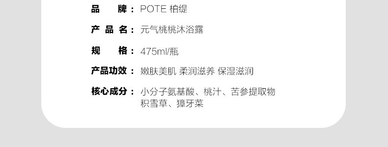 商品名称:柏缇(Pote)元气桃桃沐浴露 475ml