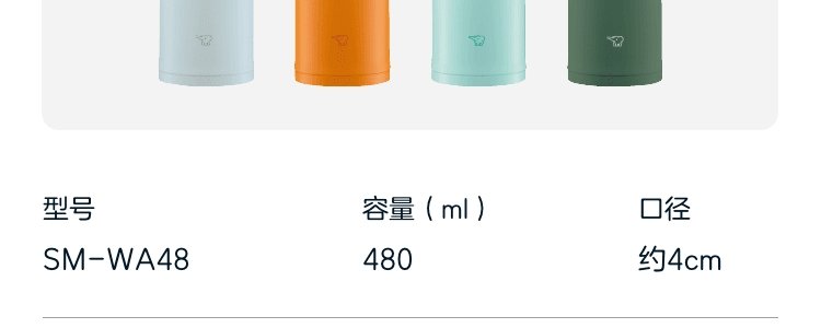 商品名称:日本 象印(Zojirushi) 纯色保温杯 SM-WA48-DA 橙色 480ml