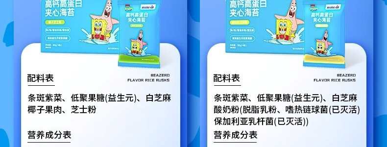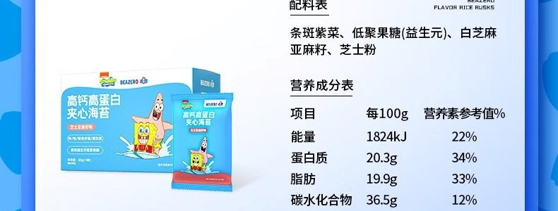 商品名称:海绵宝宝 夹心海苔 酸奶白芝麻味 32g