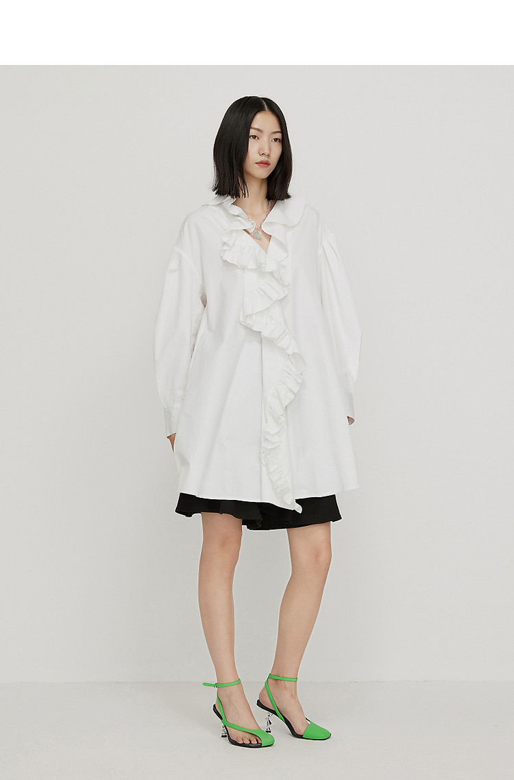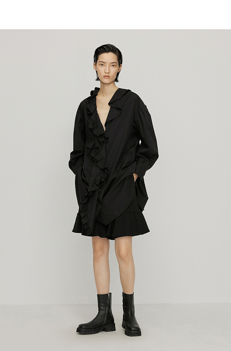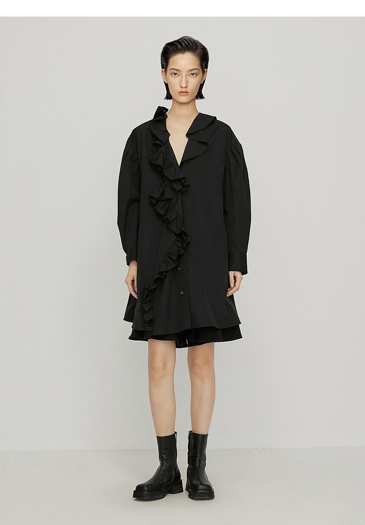 商品名称:夏连衣裙A型荷叶边宽松长袖裙装女超短裙V领 738187