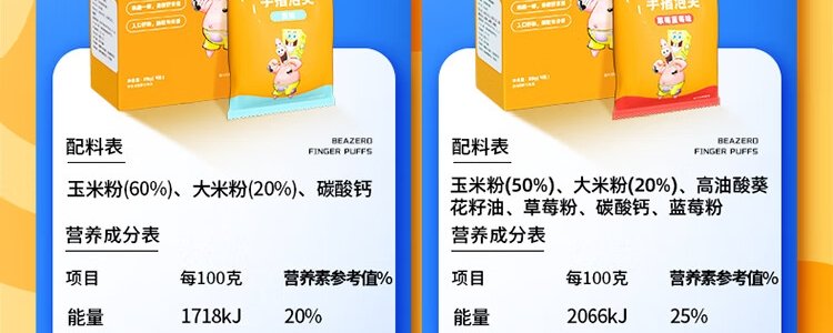 商品名称:海绵宝宝 手指泡芙 综合蔬菜味 42g