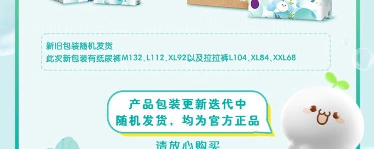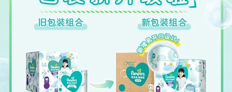 商品名称:美国 帮宝适(Pampers)清新帮拉拉裤 L104(9-14kg)箱装 新旧包装随机发