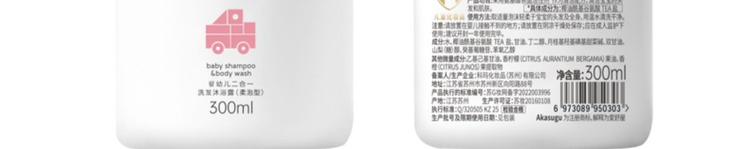 商品名称:【清仓价】爱舒屋(Akasugu)婴儿洗发沐浴二合一 300ml