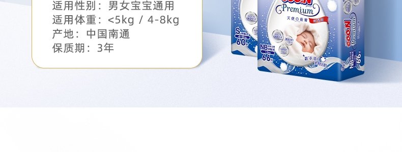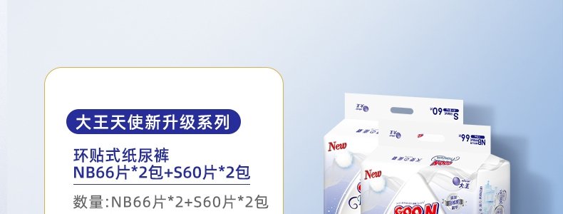 商品名称:日本 大王(GOON)天使系列精萃版婴儿纸尿裤 NB66(<=5kg)