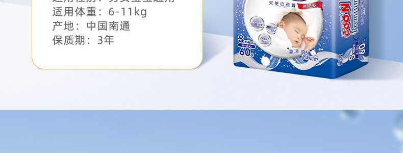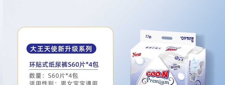 商品名称:日本 大王(GOON)天使系列精萃版婴儿纸尿裤 S60(4-8kg)