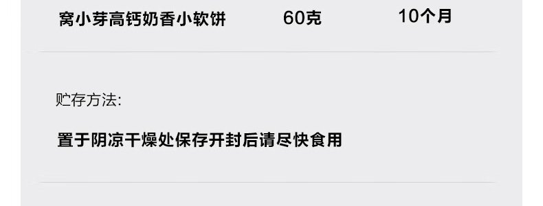商品名称:窝小芽(WOXIAOYA)高钙奶香小软饼 60g