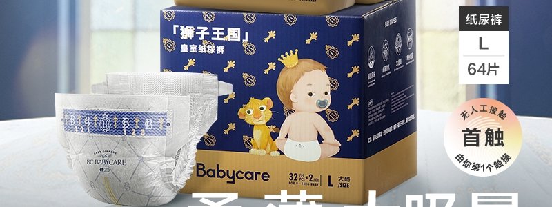 商品名称:【线上专供小箱装】babycare 皇室狮子王国纸尿裤 L32*2包(9-14kg)新旧包装随机发