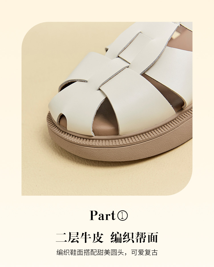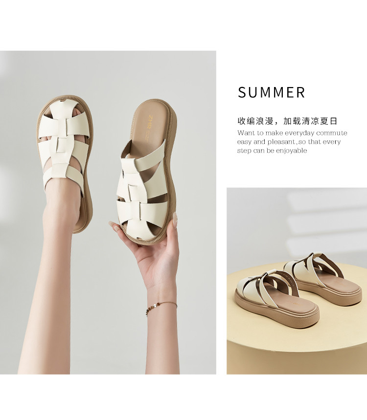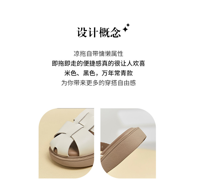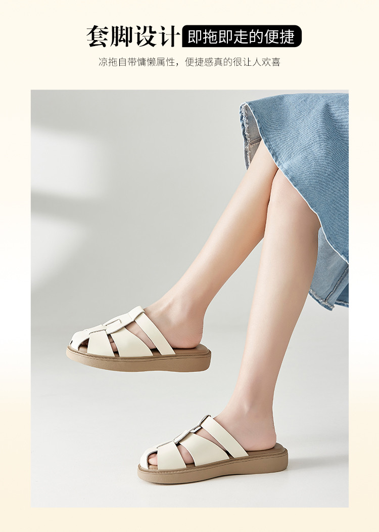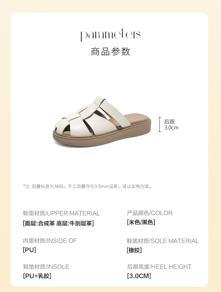 商品名称:【牛剖层革】夏季穆勒鞋编织包头半拖鞋外穿拖鞋凉拖女士拖鞋女鞋 553664