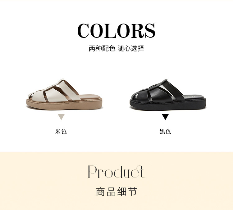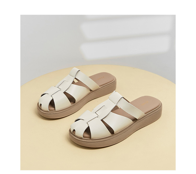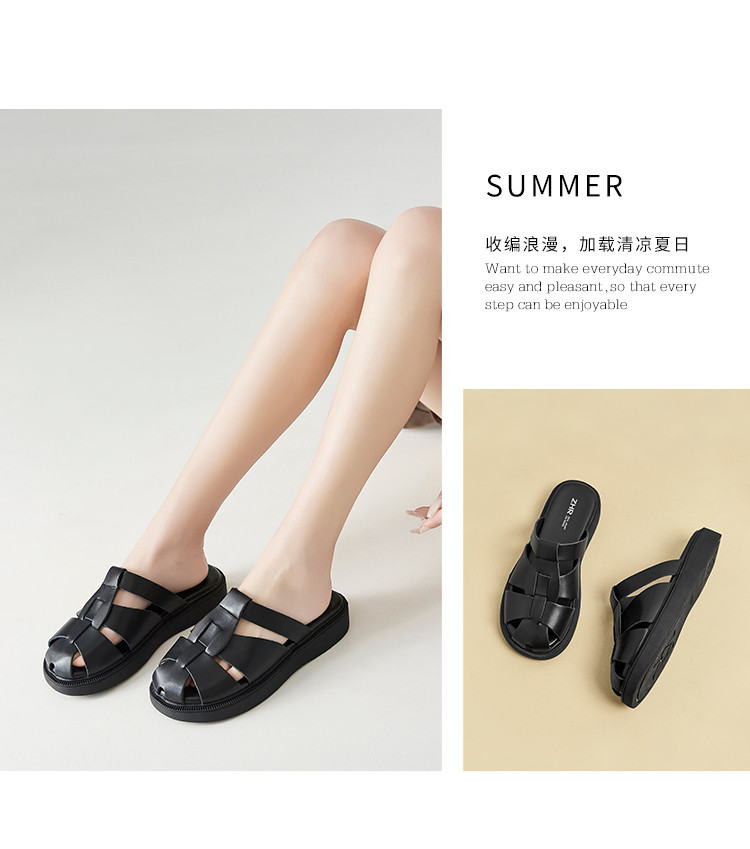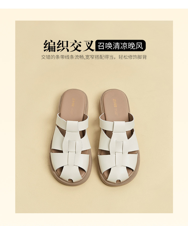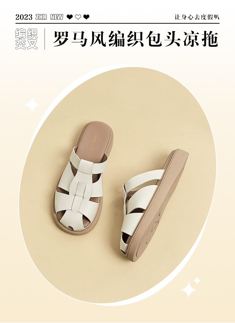 【牛剖层革】夏季穆勒鞋编织包头半拖鞋外穿拖鞋凉拖女士拖鞋女鞋 553664