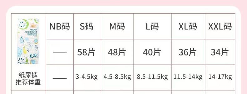 商品名称:宜婴 弱酸水果裤系列纸尿裤 S58(4-8kg)