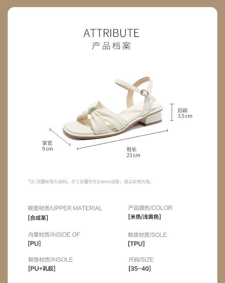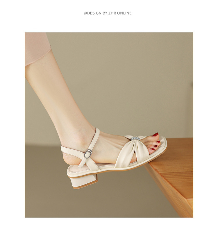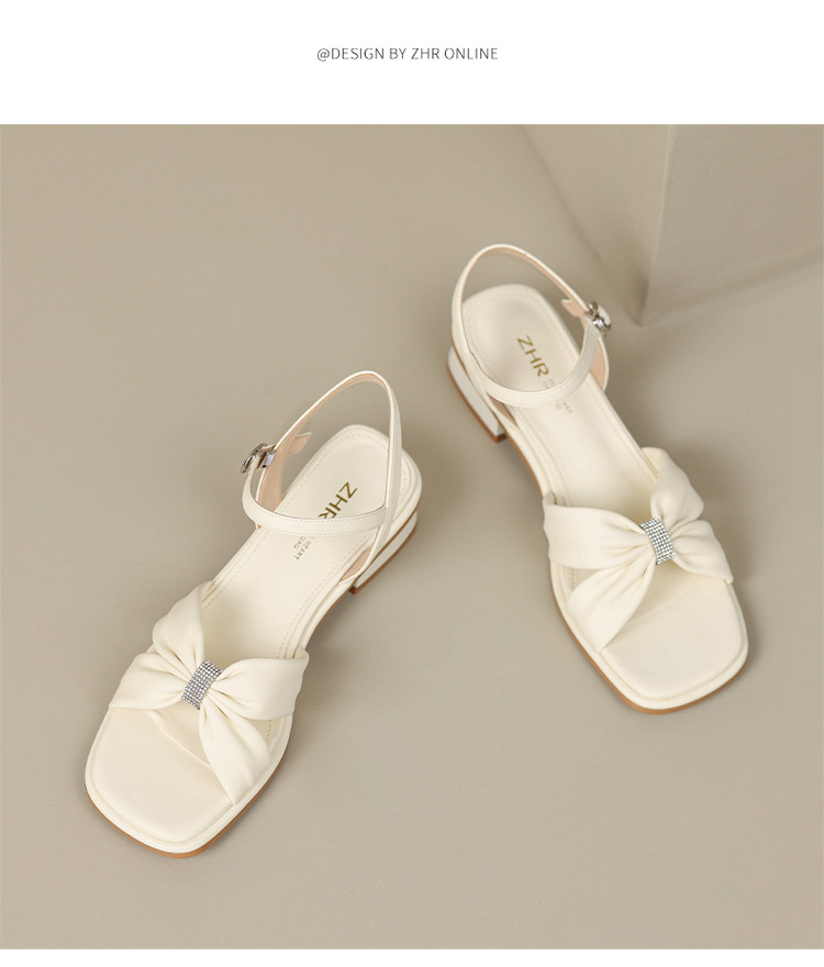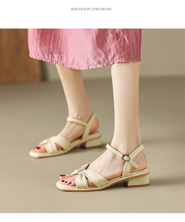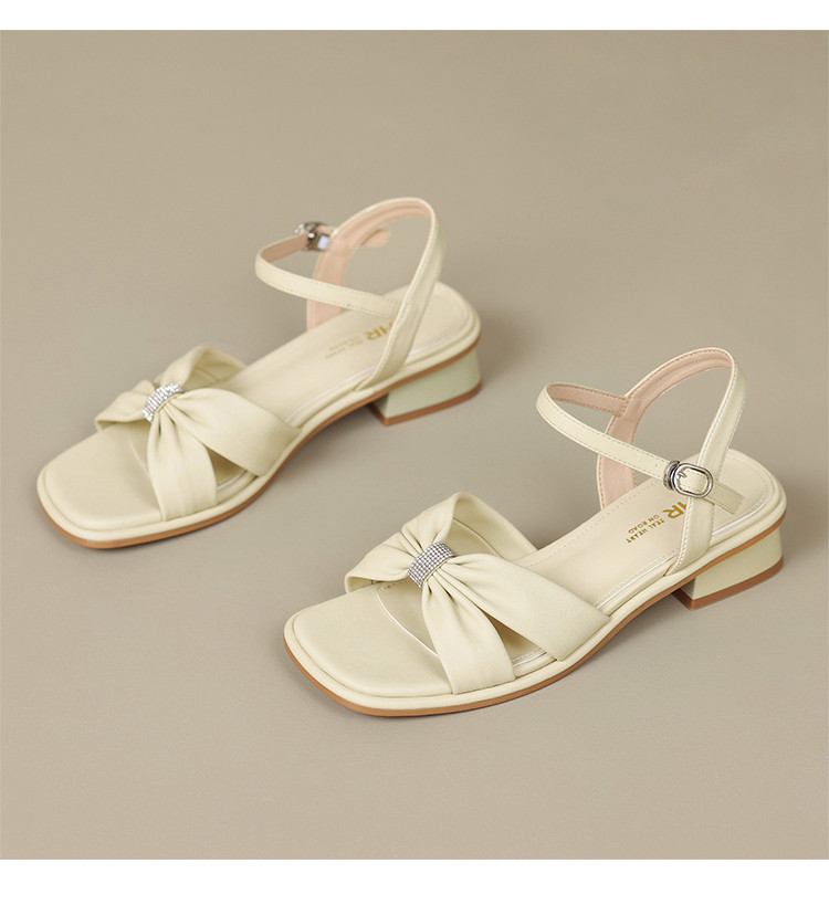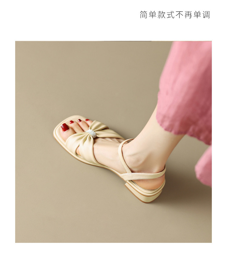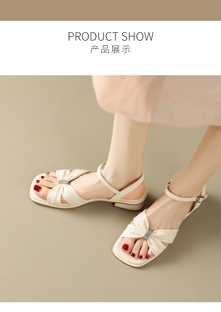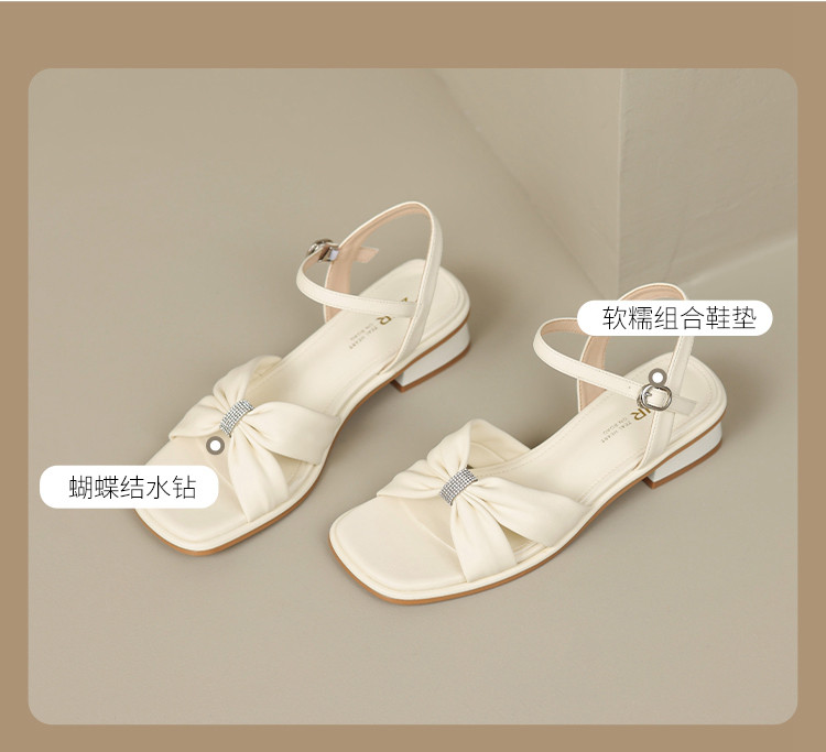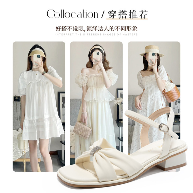 商品名称:【蝴蝶结帮面+水钻点缀】气质一字带凉鞋女百搭粗跟凉鞋夏季女鞋 911808