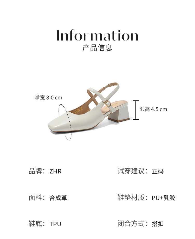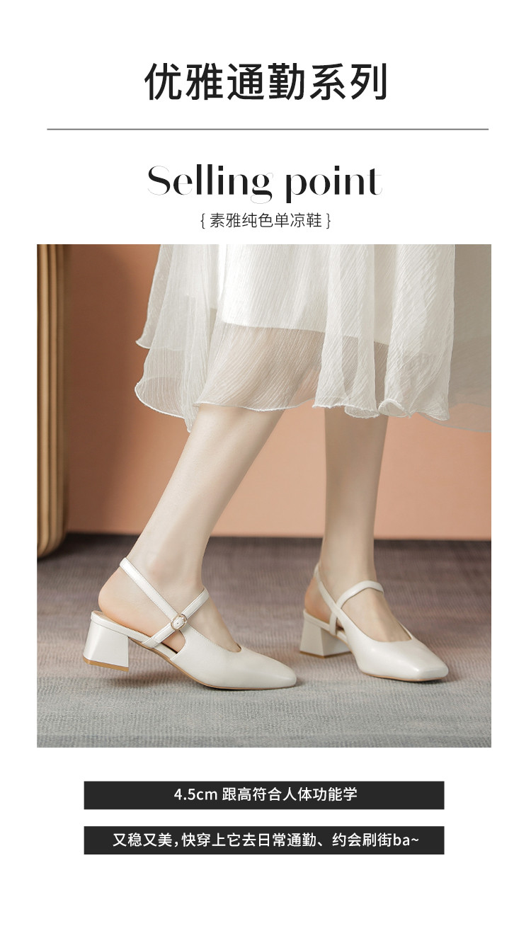 商品名称:【气质优雅】粗跟包头凉鞋女百搭女士凉鞋女夏季凉鞋玛丽珍鞋女鞋 973568