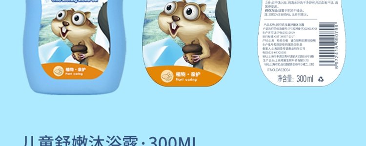 商品名称:欧贝氏 儿童舒嫩沐浴露 300ml/瓶