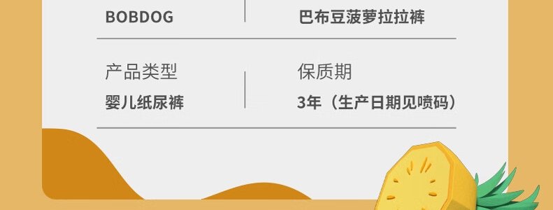商品名称:巴布豆(BOBDOG)新菠萝拉拉裤 XXL34(>15kg)