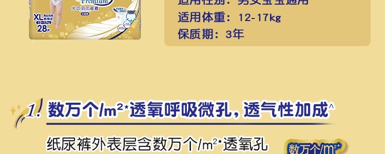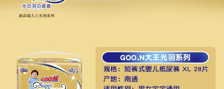商品名称:日本 大王(GOO.N)光羽系列拉拉裤 XL28(12-17kg)